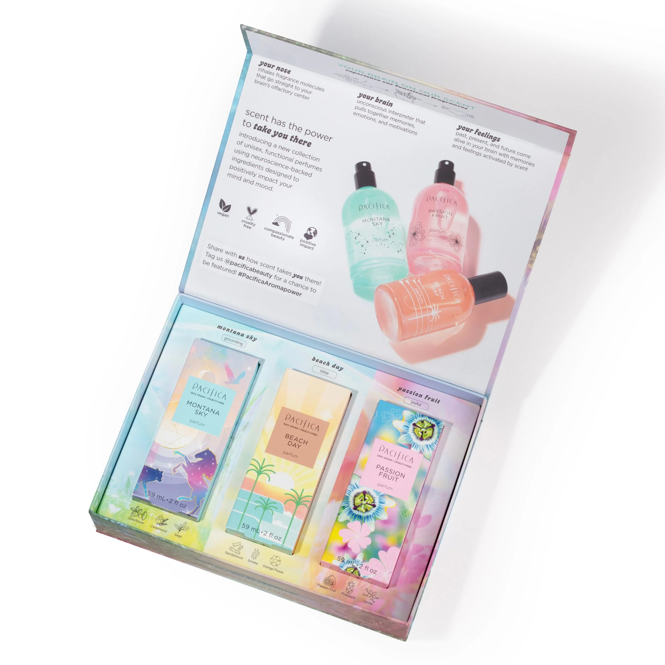 A thoughtfully curated collection of our most cherished, nature-inspired fragrances designed to elevate your scent experience. Crafted with Aromapower™ philosophy—where science meets the magic of nature—each scent is enriched with clinically studied ingredients to uplift both mind and mood. Whether you’re drawn to the grounding notes of Montana Sky, the blissful driftwood of Beach Day, or the vibrancy of Passionfruit, there’s a fragrance to match every moment—all in one beautifully giftable box.